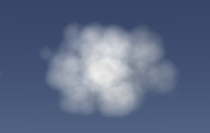 A cumulus cloud billboard positioned in the 3D scene, that is created and rendered using a CloudCollection.